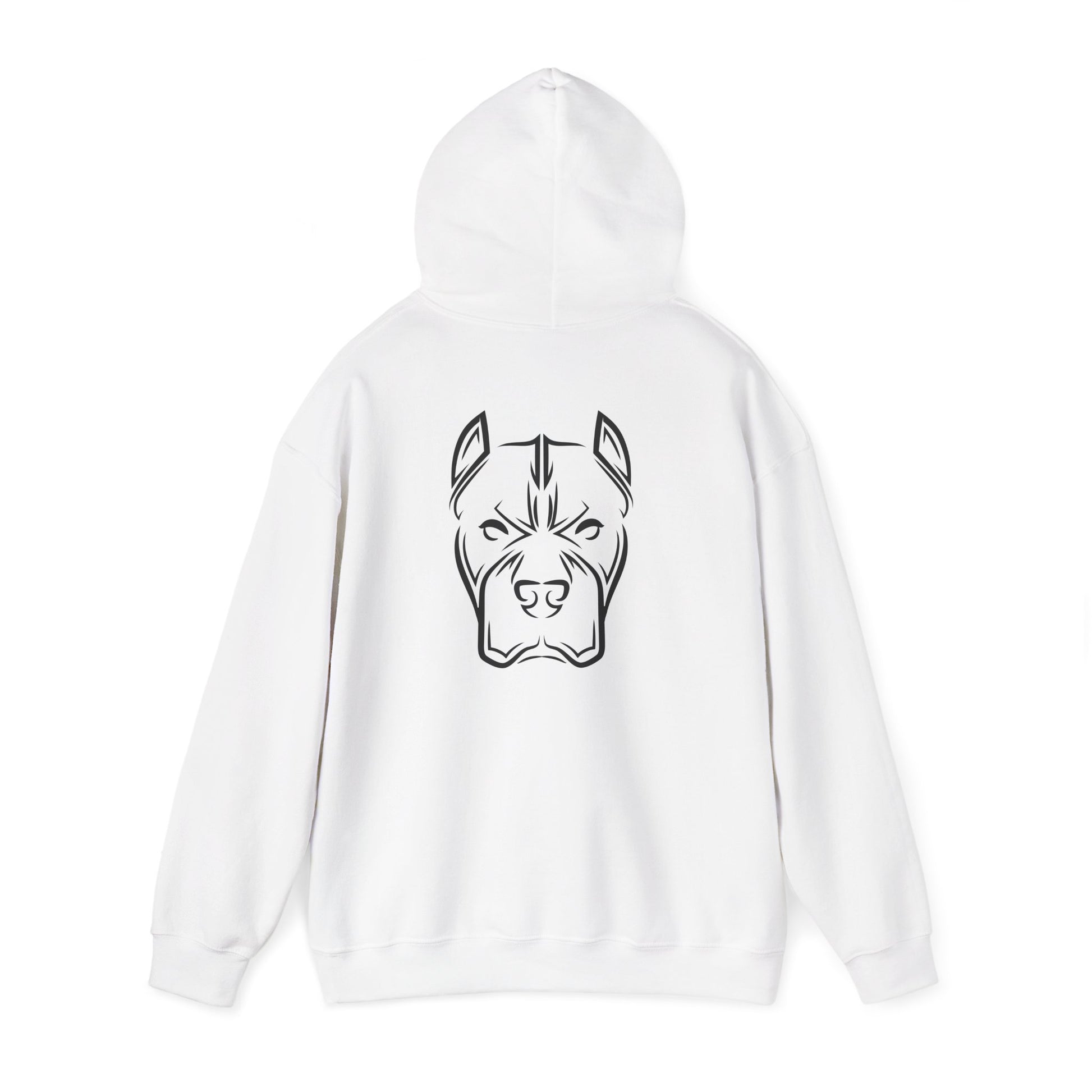 This heavyweight hooded sweatshirt brings calm strength to everyday wear. Smooth, brushed fabric holds a clean, minimalist design: a subtle "Bully and Brave" text on the chest and a bold line-art dog face on the back. It feels like a steady companion on walks, chilly mornings, or late-night drives — warm and reassuring without shouting for attention. The roomy kangaroo pocket and double-lined hood invite quiet comfort. Wear it as a statement of solidarity and gentle confidence — something that sits comfortably in the lineup of someone who values loyalty, protection, and understated style.
