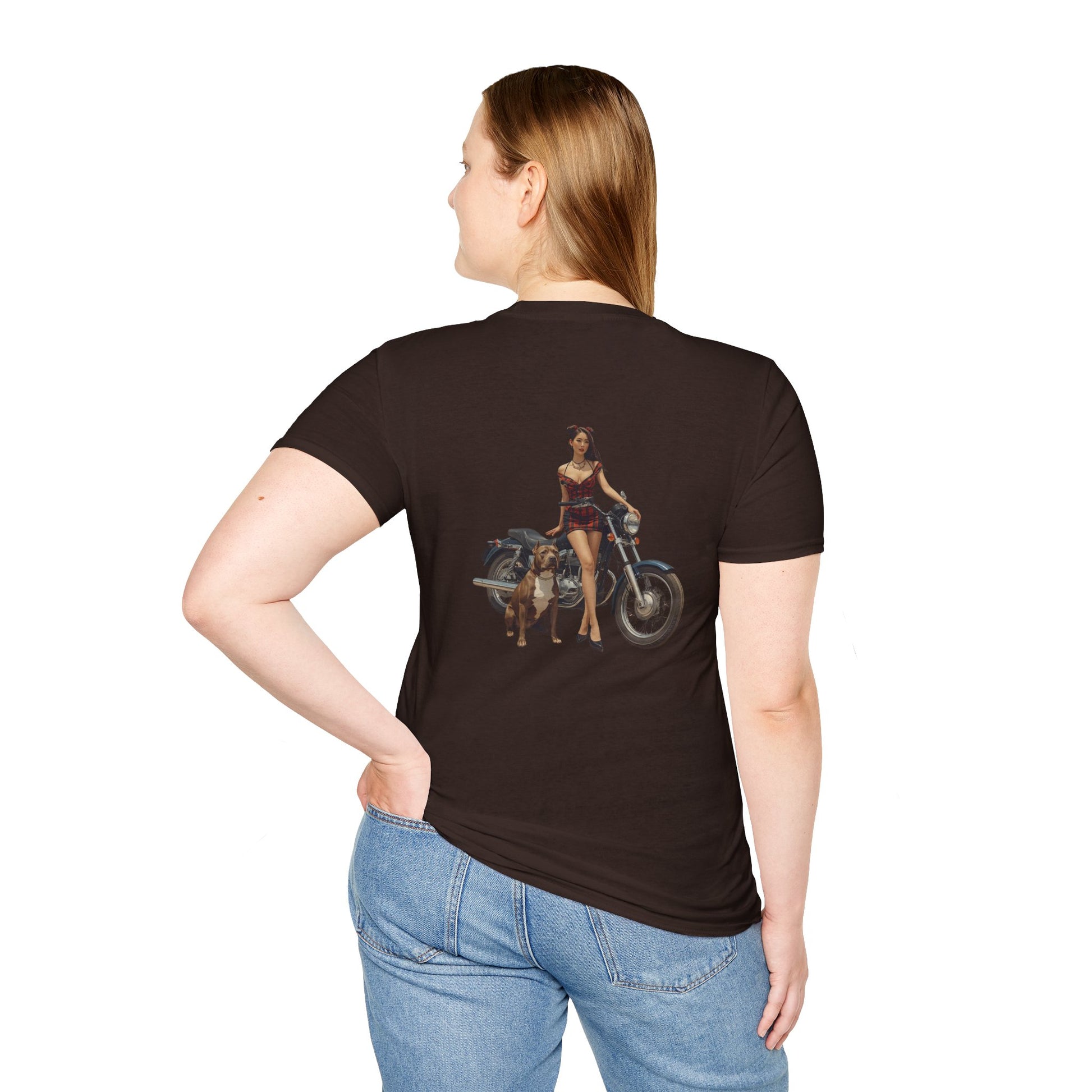 Motorcycle Pin-Up T-Shirt — Retro Biker Girl Graphic Tee